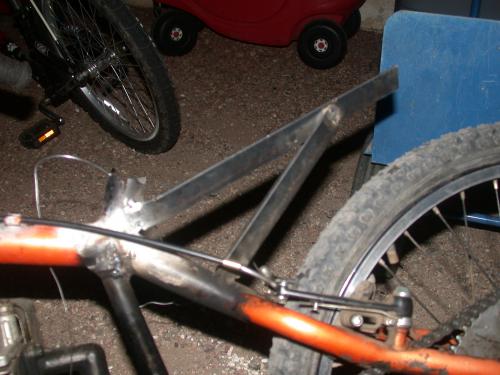 3. Now we must redesign the frame to hold the engine. (It is quite simple all you need to do is bend the front support down till you have your desired height and finish it with a motor mount.