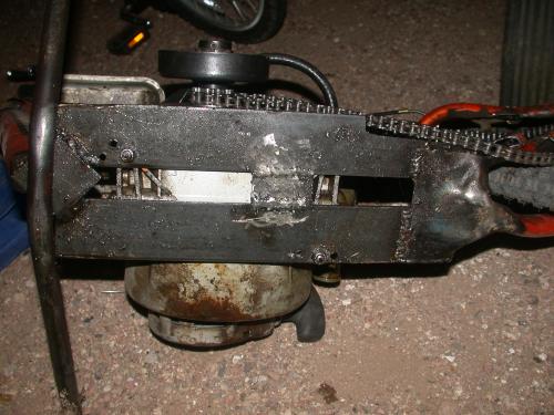 5. Once the frame is mocked up and you have fitted your engine to the motor mount and have the clutch on the motor (hint hint put the clutch on) Bolt the motor in and weld up the frame nice and tight. In my final version I put a support from the top of the frame to the bottom to prevent the frame from flexing. This is a must!!!!