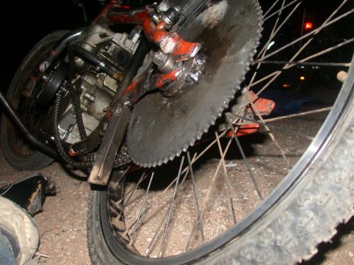 dude…you said you “Upon further inspection I realized that the clutch I had welded the sprocket onto (BMX gear) is a …..” then ya said “What do you mean? The clutch is on the engine not the sprocket.” sooo…ya musta meant you welded a #35 sprocet to your rear bike sprocket?? i told em twice down at the battered womens shelter…but they already been told twice……good luck and thanlks for great pictures but get the tech writing stuff sane please
