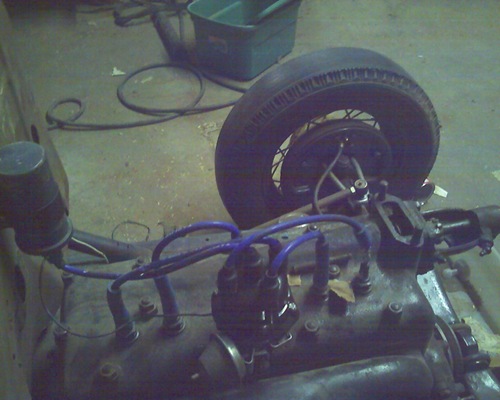 I have returned from summer vacation and installed the coil and distributor. I also hooked up the clutch linkage, turned the rear drums, and got a new gas tank for the truck. I hope to have it tearing up the asphalt by December.