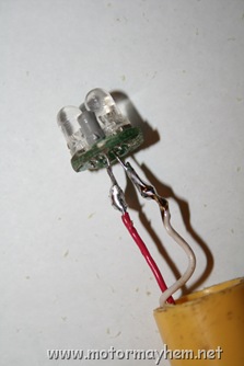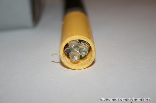 1.First I decided to use LEDs rather than a traditional light bulb. I was planning of visiting my local electronics store but ran out of time so I ended up purchasing a mag light led upgrade kit that consisted of three LEDs connected to a small circuit board.