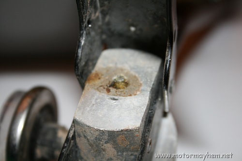 4. Next I removed the small valve that the handle presses down to release the contents of the tank. This then gave me a hole from the hose to the tank and from the tank to right underneath the handle (location of switch). This is easily done by simply pushing it through the bottom of the top valve assembly.