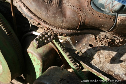 Brakes (independent left and right) notice notches; they allow the brake to be “set” for parking: