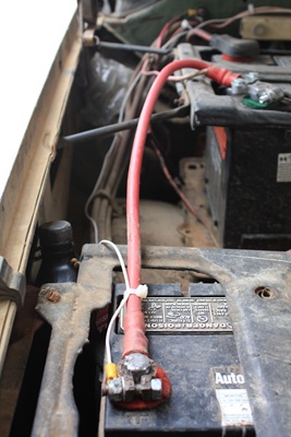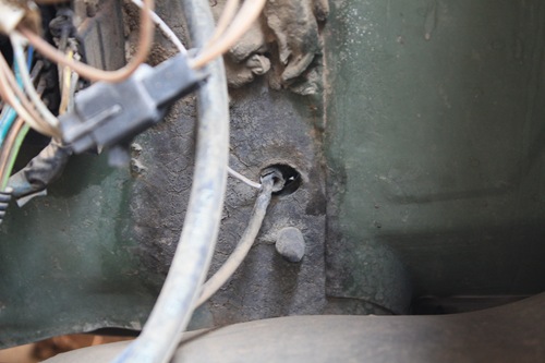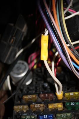 I ran my constant 12VDC wire straight to the battery as I didn’t have any 12VDC constant power sources in the cab or fuse block. To keep the cab sealed from the weather I ran the wire through the hole I drilled in the grommet used for the hood release latch cable passing through the firewall. Then I just ran it along the firewall to the battery cable.