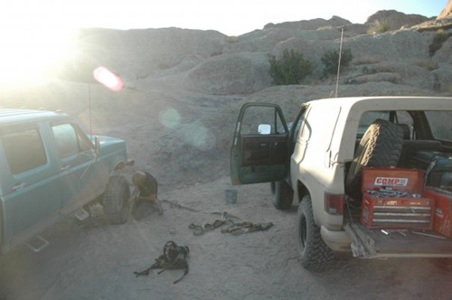 Here are pictures from our run to Chimney Rock to go fix a friends f350 that bent it’s drag link on one of the obstacles there and couldn’t make a right turn. We ended up packing a welder, generator, cutoff wheels, grinder, hand tools, and pipe (for sleeving the bent drag link so it could no longer bend). Although the recovery went much smoother than we anticipated. The old drag link came right off and we ended up modifying a f250 IFS tie-rod to fit and it is actually much heavier duty than the f350 drag link so we are going to leave it on there permanently. The recovery took about 3 hours and we drove the f350 out. Started packing and warming up the rigs at 4:00am and were out of reddington and back home by noon. Chimney rock is a great trail and I highly recommend it. It is about a 2 to get there and can range from a 2.5 to a 4.25 depending on what obstacles you decide to take. Almost all obstacles have a bypass if needed and a stock 4×4 can get to the rocks without difficulty.