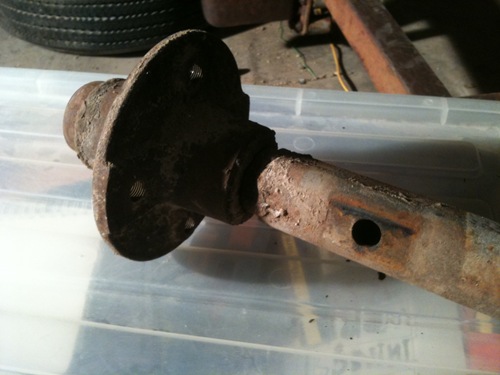 Once you have done this on both sides you can slide the axle out from under the trailer while having the trailer supported by jack-stands.